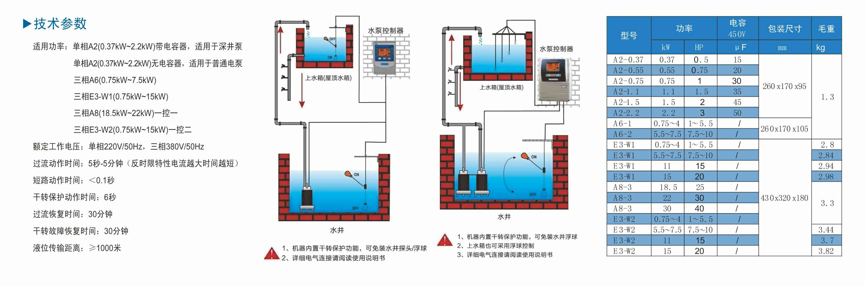 额定工作电压:单相220V,三相380V,50Hz