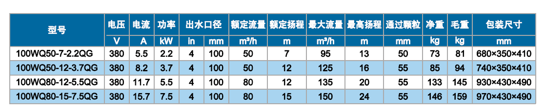 新增 WQ-QG2.2~7.5KW四极 切割式潜水排污泵